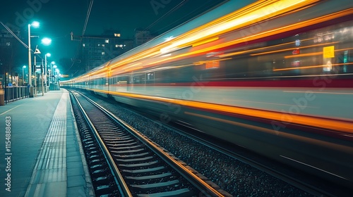 High speed train at night. Motion blur, travel, transportation.