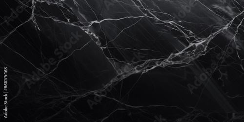 High-contrast black marble surface with intricate white veins forming a natural, dynamic pattern for luxurious interior applications