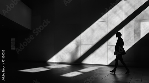 High-contrast shadow play with sleek silhouettes emphasizing dramatic angles and striking compositions