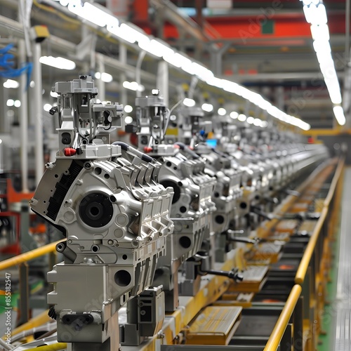 High-Performance Engine Blocks on Automated Assembly Line in Modern Automotive Manufacturing Facility"