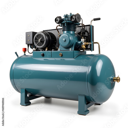 High-quality air compressor on white background, industrial efficiency