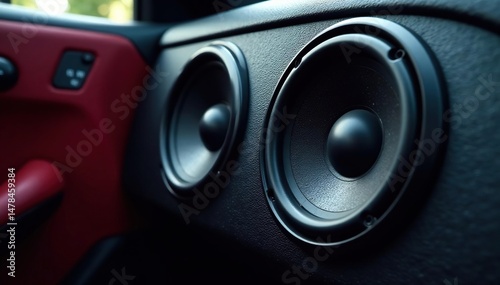 High-quality car audio speakers installed in a vehicle's door panel , entertainment, car interior