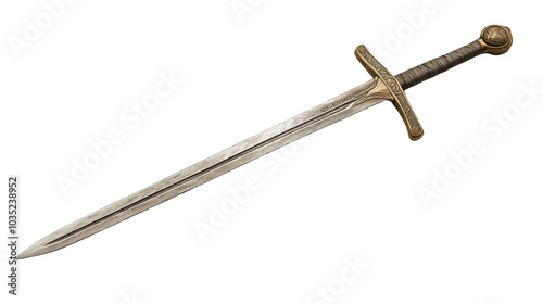 Highquality photo of a sword on a white background. Photo realistic photo.