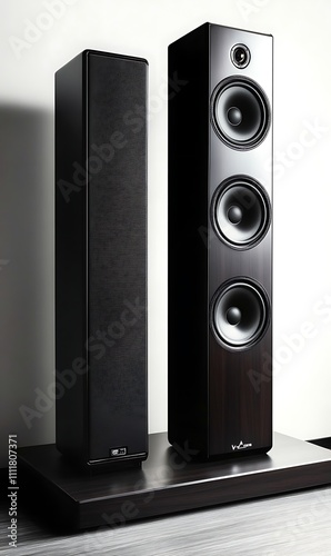 High-quality sound system with speakers and subwoofer on white background, Generative Ai