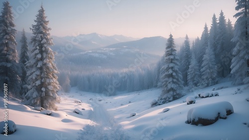 High-Resolution Snow-Covered Forest Wallpaper with Serene Winter Landscape
