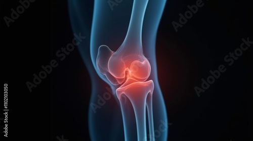 High-resolution X-ray revealing knee joint pain due to bone pathology and arthritis features against a striking black background