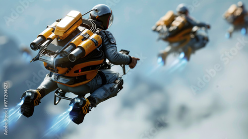 High-Speed Jetpack Battle – Blue-Flamed Thrusters in an Epic Sky Race