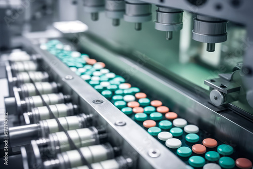 High-Speed Pill Production in Pharmaceutical Factory, generative ai
