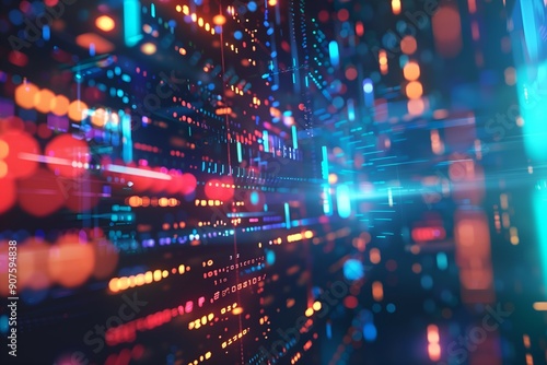 High-Tech Background with Holographic Interface and Colorful Lights