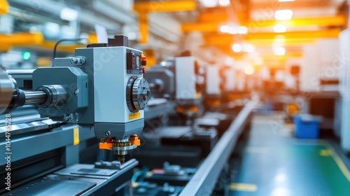 High-tech machinery in a modern factory setting, showcasing precision engineering and advanced manufacturing processes.
