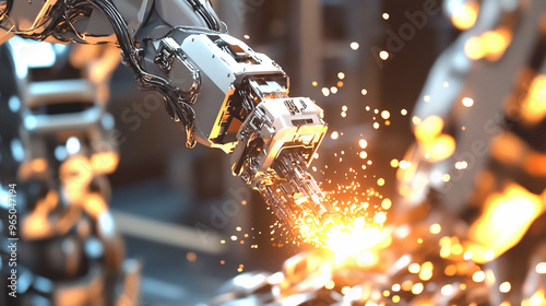 High-tech manufacturing plant with automation robots