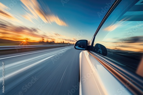 Highway Drive at Sunset - Car in Motion