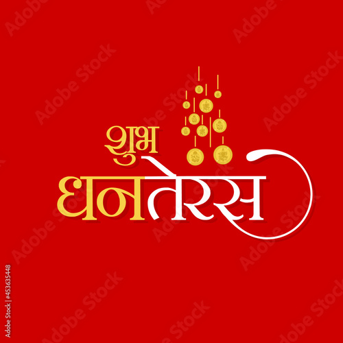 Hindi Typography - Shubh Dhanteras Means Happy Dhanteras. Hindu Auspicious Festival
