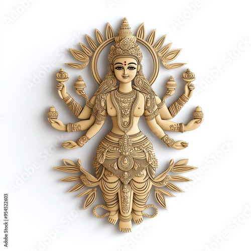 Hindu Goddess Durga with Multiple Arms Radiating Spiritual Energy in Artistic Wall Decor