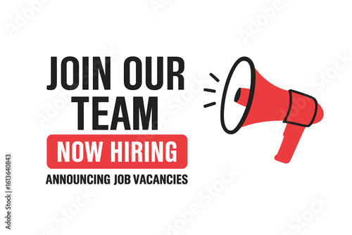 Hiring message to hire employees and announcement of job vacancies. Join our team concept template with a megaphone. Business recruitment and employment opportunity.
