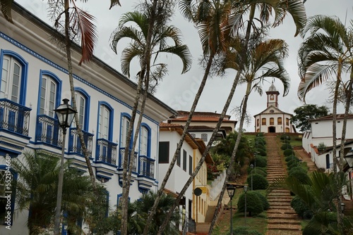 Historic center of city of Serro in Minas Gerais, with colonial buildings and in the background the church of Santa Rita. Historic center of the city.