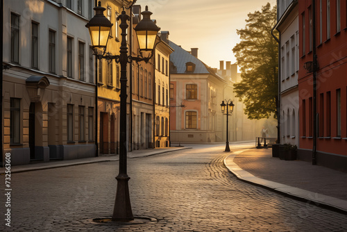 Historic Town Street at Dawn generative AI