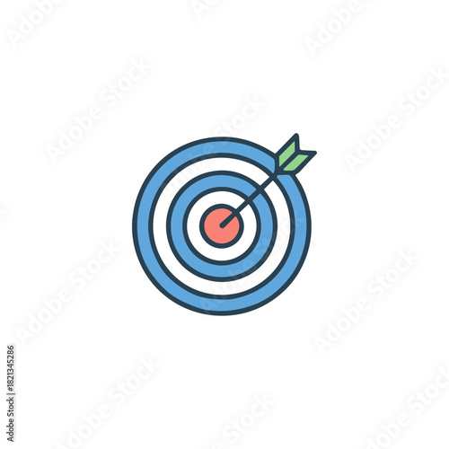 Hitting target, Reaching goal, Business target icon logo flat vector design