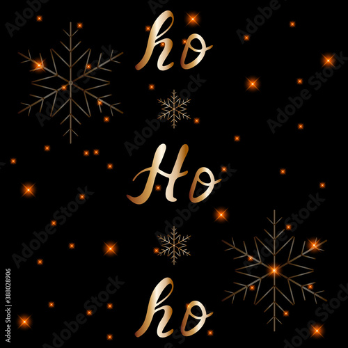 Ho ho ho christmas card with hand-drawn typography lettering. Hand drawn lettering phrase Ho - ho - ho. Vector illustration.