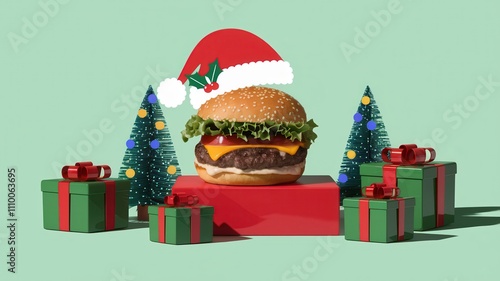 Holiday Burger with Toppings and Christmas Tree Backdrop