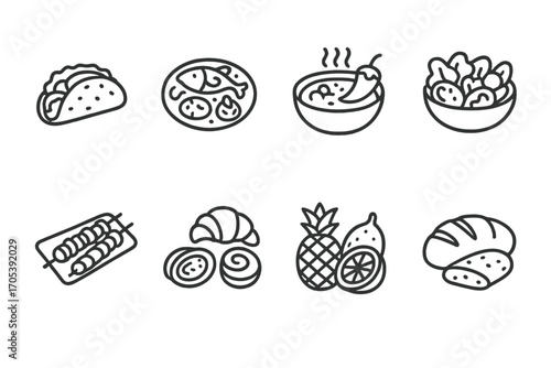 Holiday Icons Collection. Outline icon set of holiday festivals: Christmas tree, menorah, pumpkin, fireworks, gift box, candle,