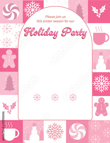 Holiday party invitation winter season gathering template pink vector