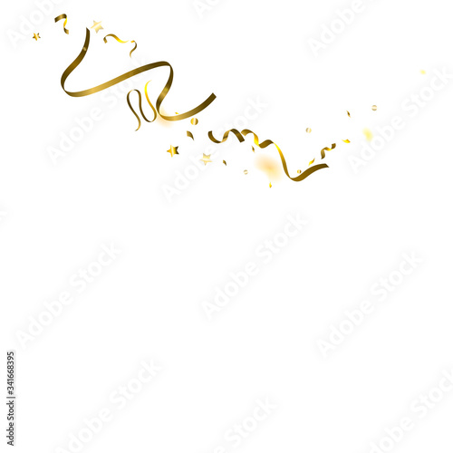 Holiday Serpentine. Gold Foil Streamers Ribbons.