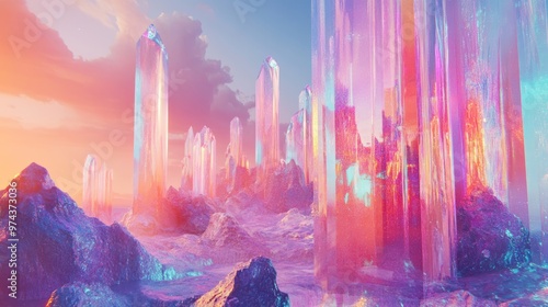 Holographic Abstract 3D Shapes: Futuristic Digital Landscape