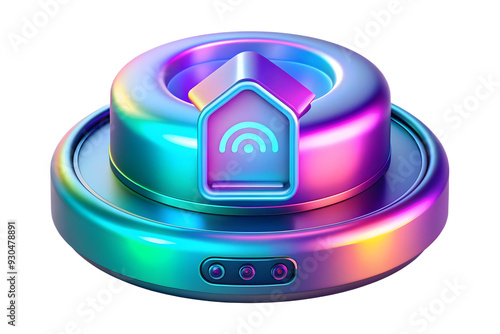 Holographic Smart Home Hub with Glowing Interface: Innovative AI Technology Integration in Smart Home Devices, Isolated on Glossy White Surface - Concept Photo Stock