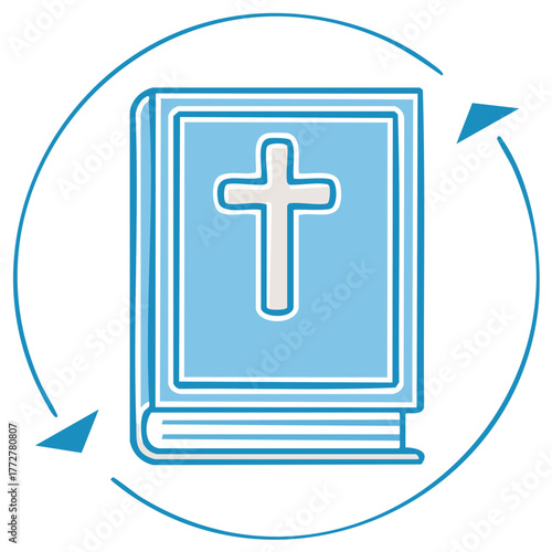 Holy Bible with cross symbol and circular arrows