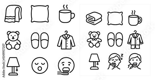 Home and comfort linear icons set – outline, cozy, household essentials