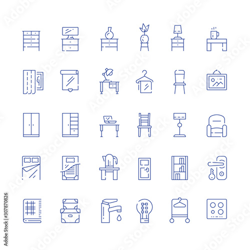 Home furniture, minimalist concept, interior design, cloth storage system, cupboard and table with chair