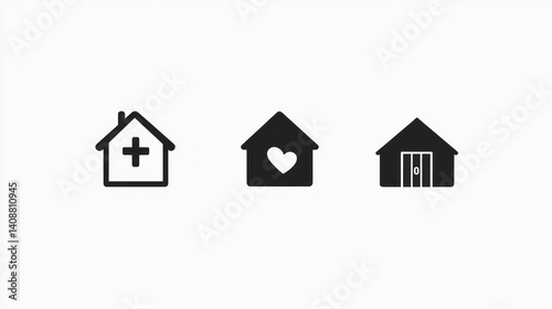 Home icons hospital, care, shelter; healthcare website design
