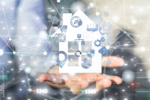 home iot - Neural network 3D illustration. Big data and cybersecurity