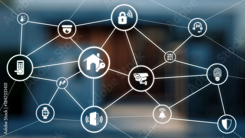Home security icons show smart home, surveillance, and safety devices. Home security ensures monitoring, home security protection, and smart access. Gist