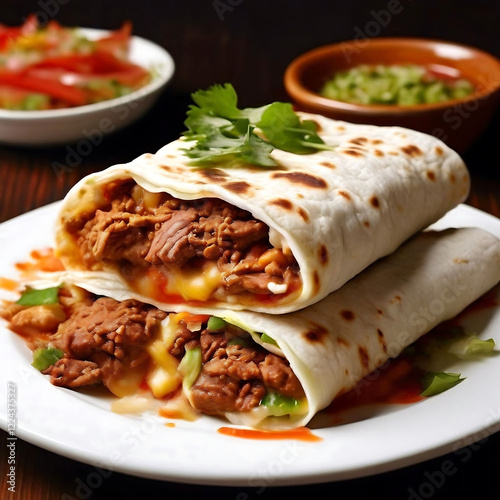 "Homemade Mexican Burrito with Fresh Ingredients and Salsa – Traditional and Flavorful Street Food"