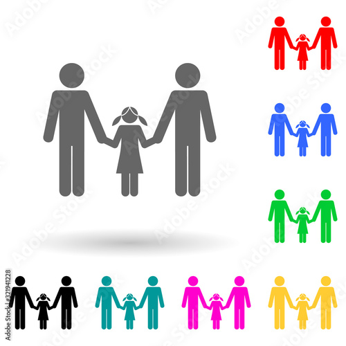 homosexual couple holding their daughter by the hands multi color style icon. Simple glyph, flat vector of family icons for ui and ux, website or mobile application