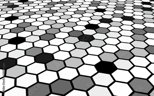 Honeycomb gray colored. Perspective view on polygon look like honeycomb. Isometric geometry. 3D illustration