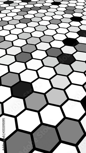 Honeycomb gray colored. Perspective view on polygon look like honeycomb. Isometric geometry. 3D illustration