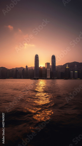 Hong Kong City Skyline from Avenue of Stars at Sunset