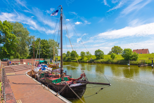 HOOKSIEL, WANGERLAND, GERMANY - JUNE 11, 2017: Old port. Copy space for text.