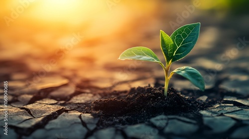 Hopeful Green Sprout Thriving in Parched Soil, hope, nature, resilience, growth
