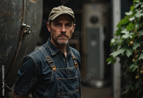 Hops farmer at a beer ingredient processing plant, showcasing dedication