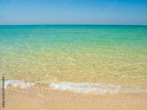 Horizon photogrphy beautiful landscape summer season panorama view tropical sea beach white sand clean blue sky background calm nature ocean wave water travel holiday at samae san island sun day time.