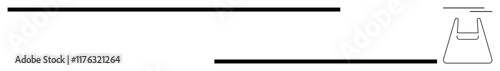 Horizontal black lines of varying lengths and thickness intersect a minimalistic, geometrically stylized basket. Ideal for simplicity, design, balance, order, modernity, abstraction, and symmetry