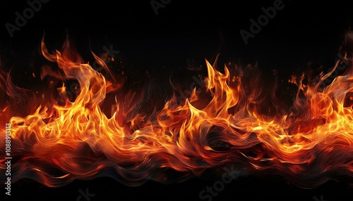 horizontal line of fire flames on black background