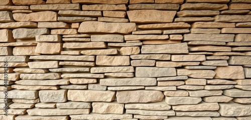 Horizontal rustic stacked stone wall background, natural texture, aged, rock wall, construction