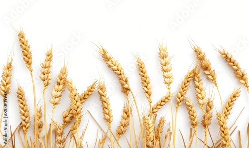 Horizontal wheat ears isolated on a white background with clipping path. Full Depth of field