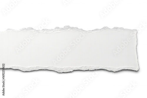 Horizontal white torn paper piece with transparent background, ideal for adding a realistic touch to designs