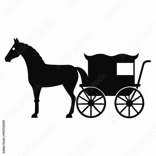 Horse-drawn carriage vector on white background.